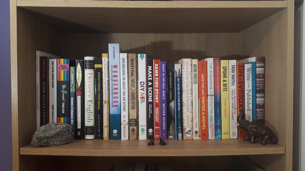 There are so many wonderful craft books out there, but sadly I cannot keep all of them on my shelves. I have one shelf for style guides, dictionaries, and other writing-adjacent reference books, and this lovely shelf for my editing and writing craft books. Here’s a little about three of my favourites from this shelf.