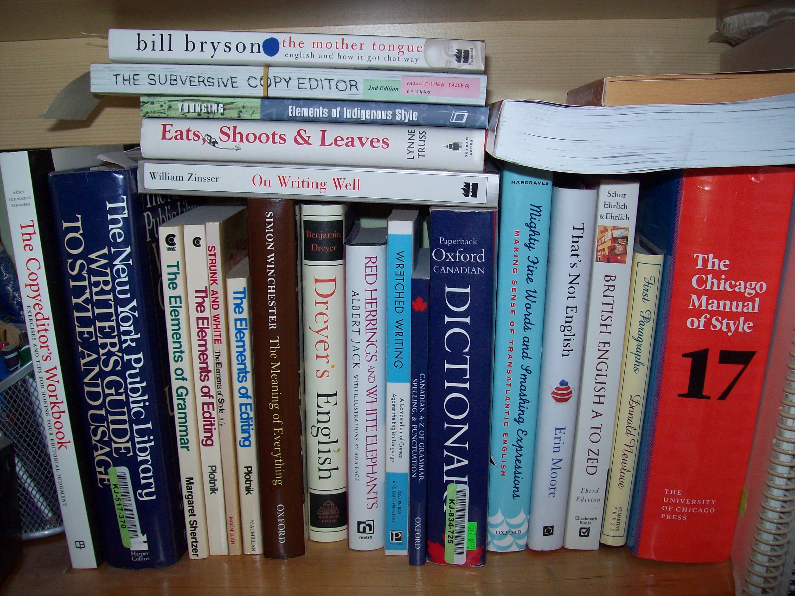 In What’s on Your Editing Bookshelf, members of the editing community share what’s on their (physical) bookshelves and highlight a few notable titles. In our eighth instalment, four editors from Toronto share some of their favourites. If you’d like to show us your bookshelf, let us know!