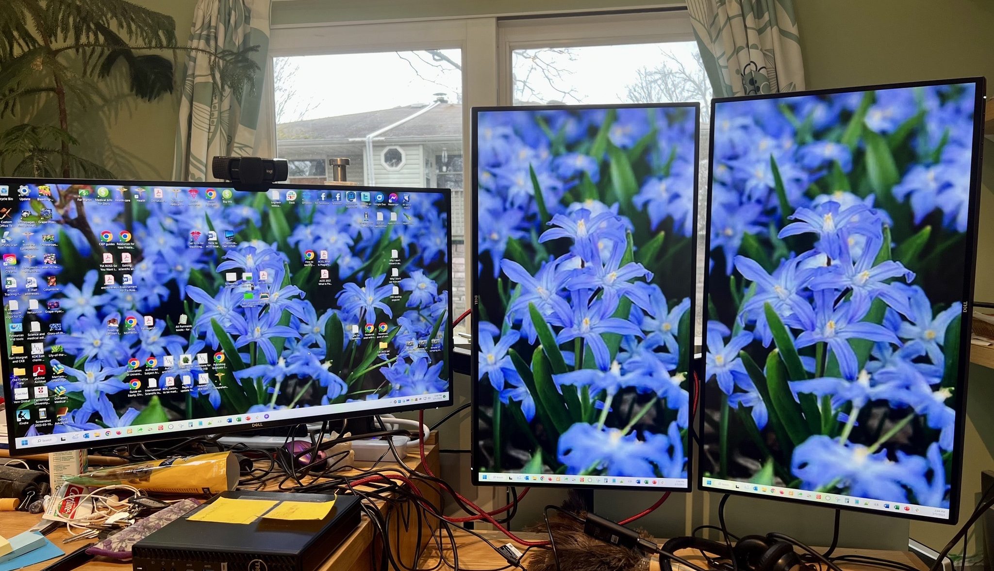 The tech set-up is also not fancy: just a laptop and a Bluetooth mouse. Nothing is ergonomic or adjusted to my height. The whole thing is a bit of a cautionary tale, a “what not to do” if you want an uber-comfortable space to work. Maybe one day I’ll invest in something at least slightly better for my back, but for now, the wooden chair at the dining table is where you’ll find me.