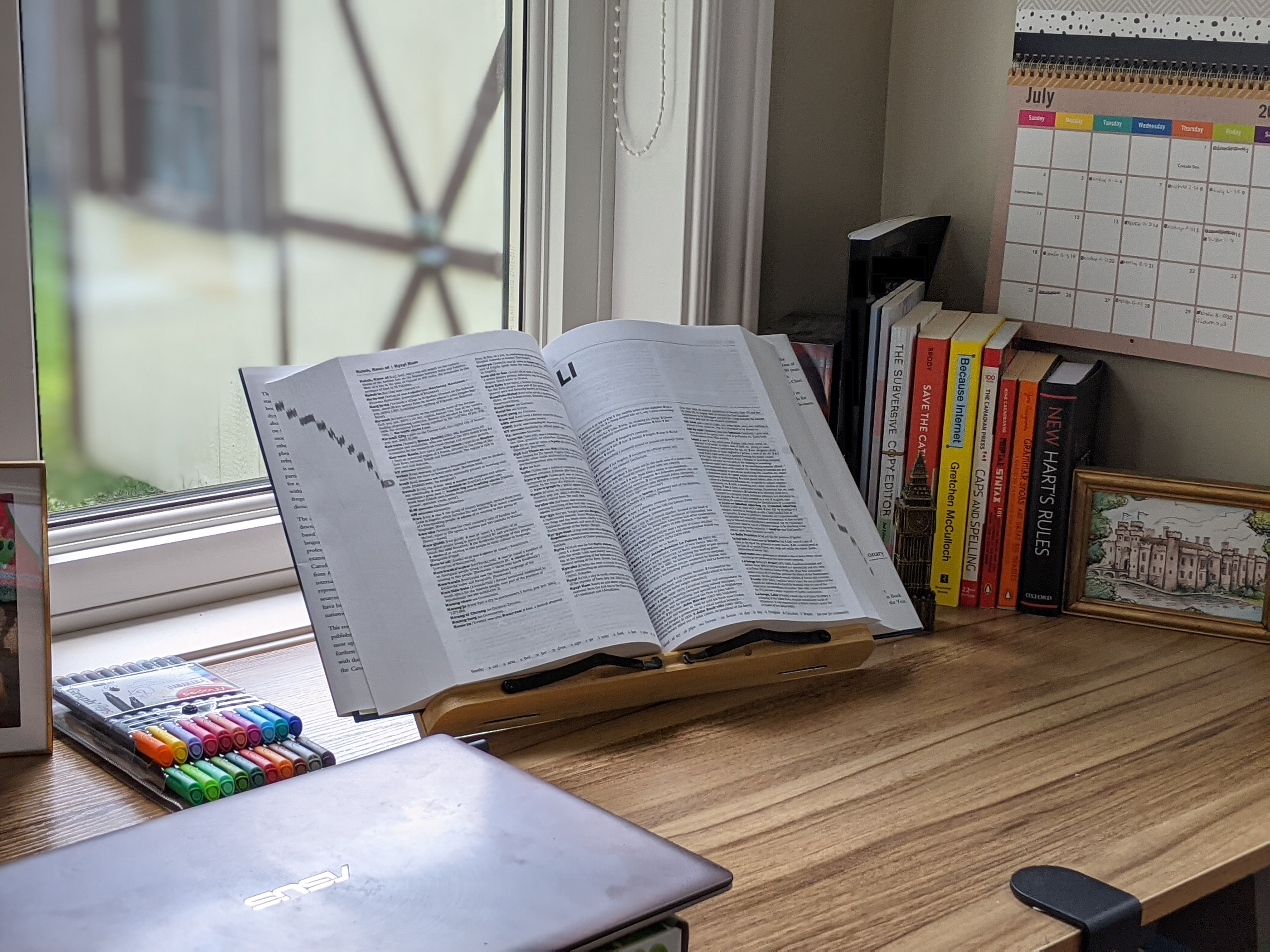 Recently, I discovered a new favourite type of pen that feels good to write with, comes in fun colours, and has Taylor Swift song lyrics on them (“borrowed” from my daughters). I am also amused every day by my coaster of proofreading symbols because it has a spelling error!